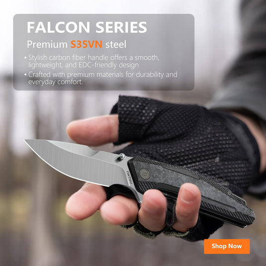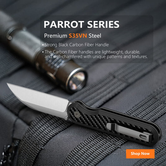 I’m seriously impressed with the Fintiso Parrot Carbon Fiber 3" Folding Knife. It’s sleek, lightweight, and feels premium without the premium price. The S35VN blade is razor-sharp and holds its edge like a champ, making it perfect for everyday tasks. The carbon fiber handle looks amazing and feels great in hand, and the button lock opens smooth as silk. It’s compact enough to carry comfortably but tough enough to handle real work. This knife is a winner. Fintiso absolutely nailed it with this one.